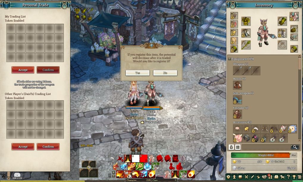 - ล่าสุดผู้เล่นที่ไม่เป็น VIP สามารถรับการแลกเปลี่ยนจากผู้เล่นที่เป็น VIP ได้แล้วแต่มีเงื่อนไขคือค่า Potential ของ Item นั้นๆจะเหลือ 0 ทันที