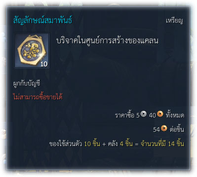1. ไอเทมเพิ่มค่าประสบการณแคลน "สัญลักษณ์สมาพันธ์" เป็นไอเทมสำคัญเพียงชนิดเดียวที่ใช้ในการ "อัพค่าประสบการณ์แคลน" ซึ่งสามารถหาได้จาก "เควสสมาพันธ์" หรือ "ใช้ตราประทับ" ที่ได้จากการสังหารบอสฝ่ายตรงข้ามได้ มาแลกเท่านั้น