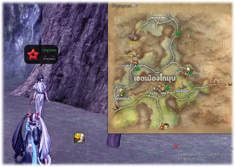 1. ให้เราไปหา NPC "คิมอีกยอง" ที่ ทะเลทรายมรณะ > เขตเมืองโทมุน > หมู่บ้านเงาโอ๊ค (*หากใส่ชุดฝ่ายอยู่ NPC จะไล่เราไปถอดก่อน แล้วค่อยกลับมาคุยใหม่)