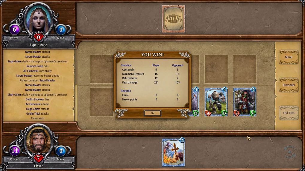 Astral Heroes เป็นเกมการ์ด(CCG) ที่สามารถเรียนรู้และเข้าถึงได้อย่างง่ายดาย โดยตัวเกมจะแบ่งออกเป็น 3 โหมดคือ