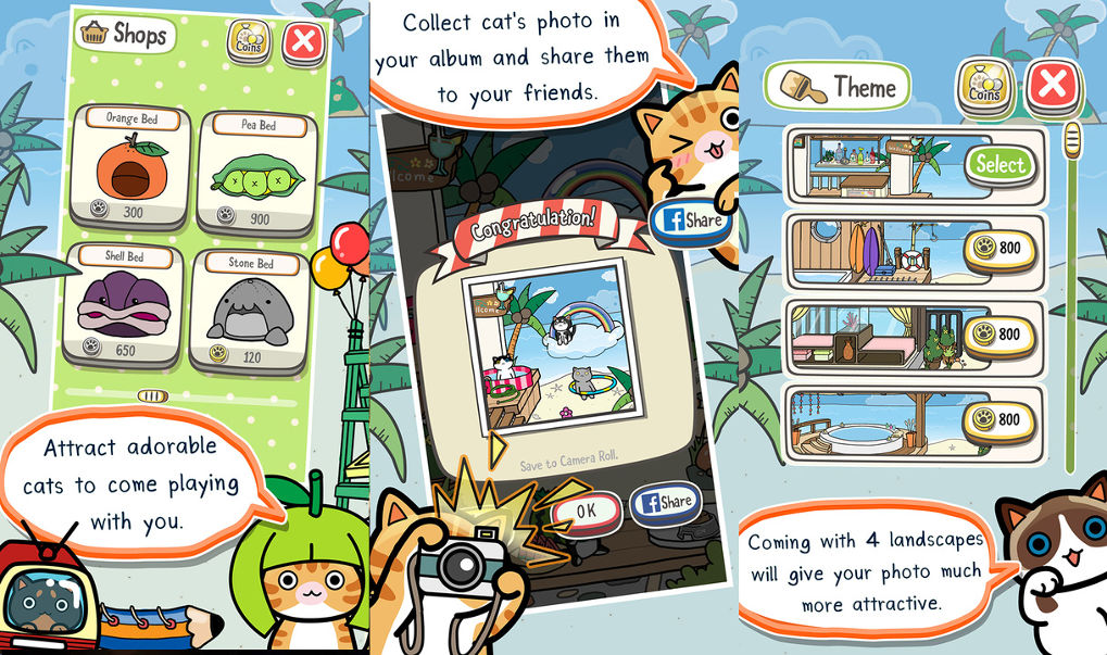 เกมสะสมแมวเหมียวซึ่งมีลักษณะการเล่นคล้ายๆกับเกมชื่อดังอย่าง Neko Atsume ที่เราจะต้องวางอาหารและของเล่นเพื่อล่อแมวประเภทต่างๆให้ออกมา โดยเราสามารถที่จะถ่ายภาพเจ้าเหมียวที่หลงเข้ามาติดกับในท่าทางต่างๆได้ และเก็บไอเทมที่เจ้าแมวทำหล่นไว้เพื่อทำเควสหรือปลดล็อกไอเทมใหม่ๆ