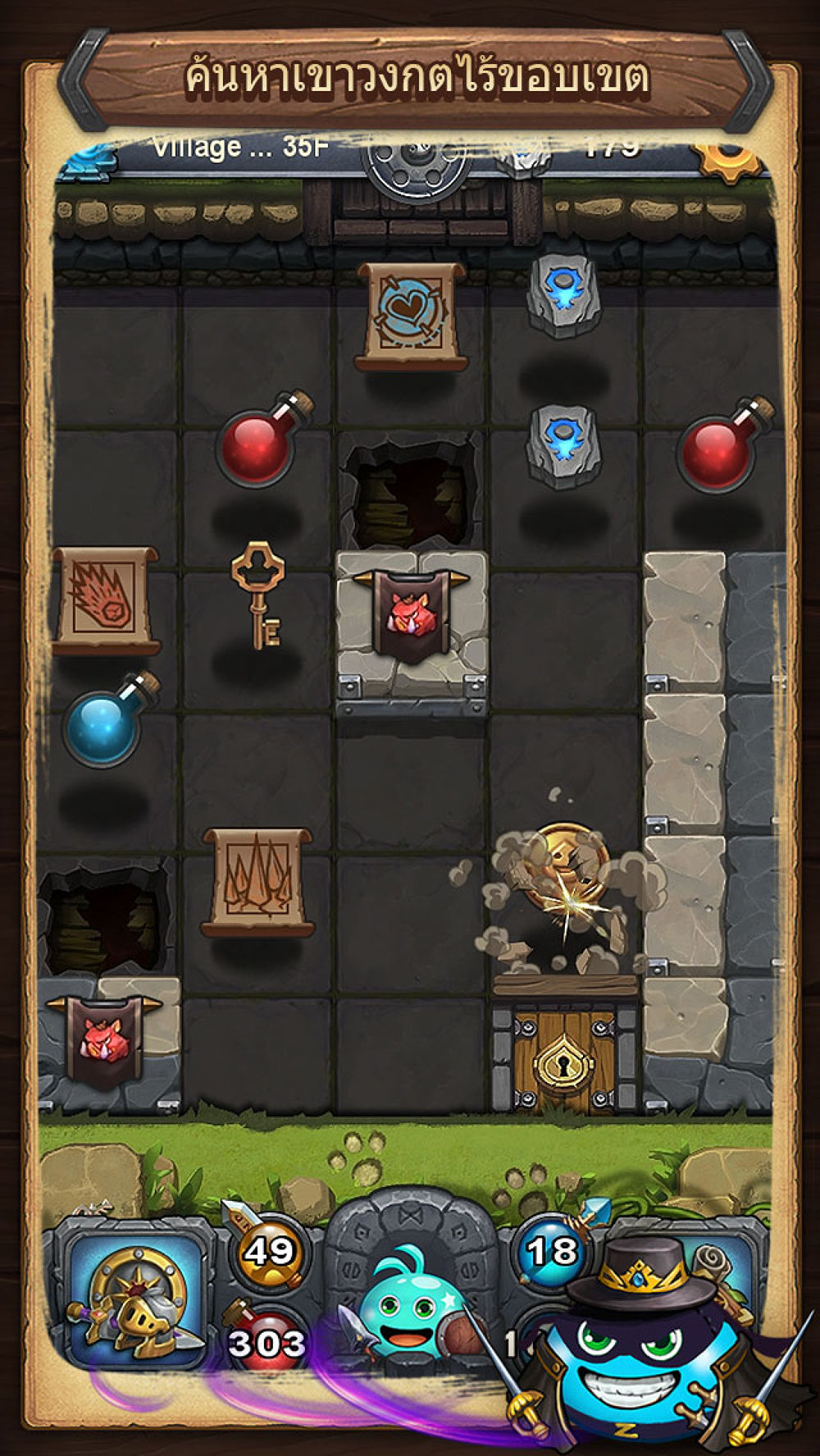 การผสมผสานระหว่าง“Dungeon & Fighter” และ "Minesweeper" อย่างสมบูรณ์แบบ การเล่นทุกครั้งก็เหมือนการเปิดประสบการณ์ใหม่ ใต้หินกระดานชนวนทุกชิ้นอาจจะซ่อนนักธนูหรืออัศวินที่โจมตีคุณตลอดเวลา อาจจะซ่อนน้ำยาเพิ่ม HP เอลฟ์น้อย หรือแม้แต่ถ้ำลับเอาไว้ก็ได้ และแน่นอนว่า อาจจะเป็นหมูน้อยสีชมพูที่ถามคุณว่ารักมันไหมอย่างไม่หยุดหย่อน