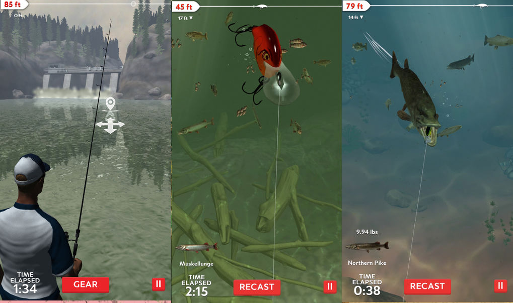 เกมตกปลาภาพสวยอีกเกมนึงที่มีรายละเอียดต่างของฉากและสถานที่ต่างๆ จนแอบลืมไปเลยว่านี่เกมมือถือ ตัวเกมเราสามารถเล่นได้จนกว่าจะเบื่อเพราะเพราะว่าไม่ต้องใช้พลังงานในการเล่น หรือหากว่าเรากลัวว่าตกปลาแต่ที่เดิมๆจะเบื่อลืมไปได้เลยเพราะเราจะได้ไปตกปลายังสถานที่ต่างๆแบบไม่ซ้ำกันเลยทีเดียว เรียกได้ว่าคนที่ชอบเกมตกปลาไม่ควรพลาดเลยล่ะครับและจุดสนุกอีกอย่างของเกมคือเราสามารถที่จะแข่งกับคนอื่นได้ผ่านโหมดทัวร์นาเม้นซึ่งมีหลายลีคให้เราได้เข้าเล่นเพื่อไปท้าทายผู้เล่นคนอื่นๆทั่วโลก