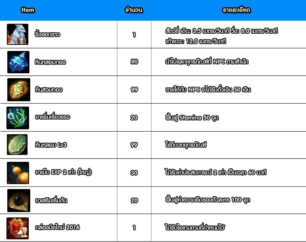 กล่องมือใหม่ 2016 เมื่อเลเวลถึง 30 ผู้เล่นจะได้รับไอเทมดังต่อไปนี้