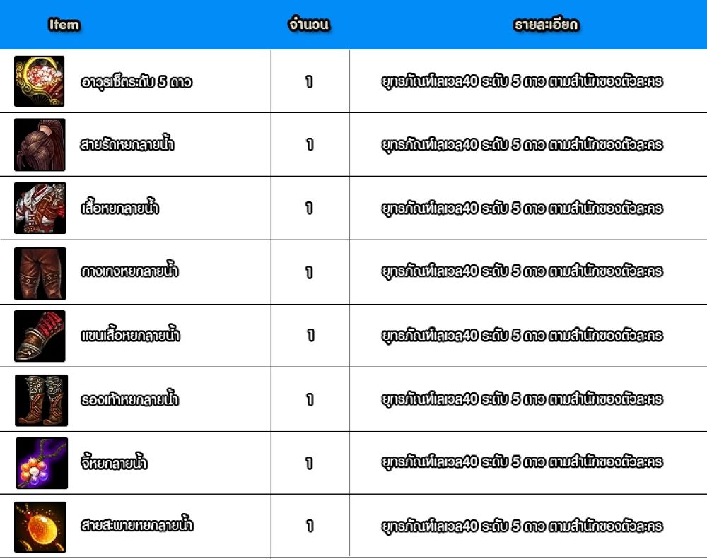 4.เมื่อลงทะเบียนรับไอเทม ระบบจะส่งไอเทมไปยังจดหมายภายในเกมผู้เล่นควรลบจดหมายที่ไม่ได้ใช้งานออกเสียก่อนเพื่อป้องกันจดหมายเต็มซึ่งอาจทำให้ไม่ได้รับไอเทมจากกิจกรรม