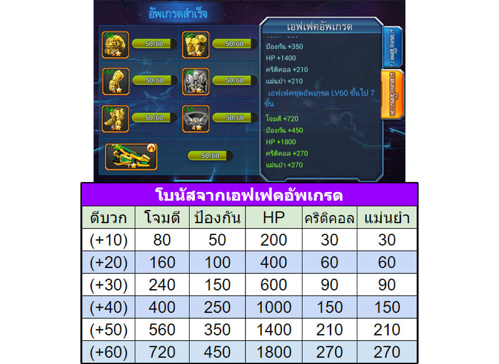 (ตารางค่าอัพเกรด +1จนถึง+50) [สามารถอัพเกรดได้มากกว่านี้]