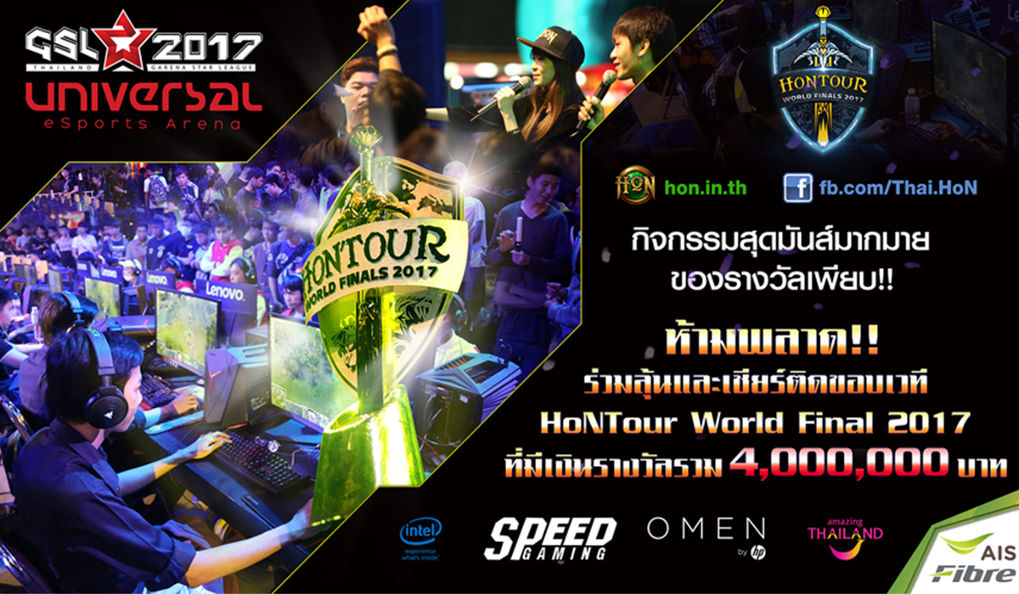 HoNTour World Finals 2017 การแข่งขันเกม Heroes of Newerth ที่รวมทีมจากทั่วโลกโดยมีรางวัลรวมสูงถึง 4,000,000 บาท และการแข่งขัน 5v5 Midwar Tournament ชิงเงินรางวัลกว่า 60,000 บาท ซึ่งหากใครยังไม่มีทีมสามารถติดต่อทีมงานเพื่อหาทีมในงานได้ แถมมีกิจกรรมร่วมสนุก เช่น โหมด 1v1 เพื่อลุ้นรับรางวัลหรือรับของแจกภายในงาน