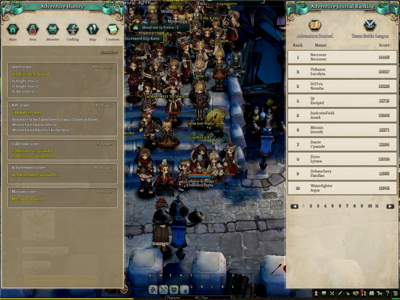 ระบบนี้มันก็คือระบบที่จะทำให้เราได้ทราบถึงเรื่องราวที่ผ่านมาว่าเราเคยทำอะไรบ้าง ฆ่ามอนสเตอร์ตัวไหนบ้าง ไปแมพไหนมาบ้าง เปิดแผนที่ครบ 100%ไหม ถ้าทำครบแล้วได้อะไร จะได้คะแนนมาไต่ลำดับ Rank เอาแต้มไปแลกของ Oh Wowwwwwwwww น่าสนใจนะ ลองดูหน้าตาของ Interfaceกัน
