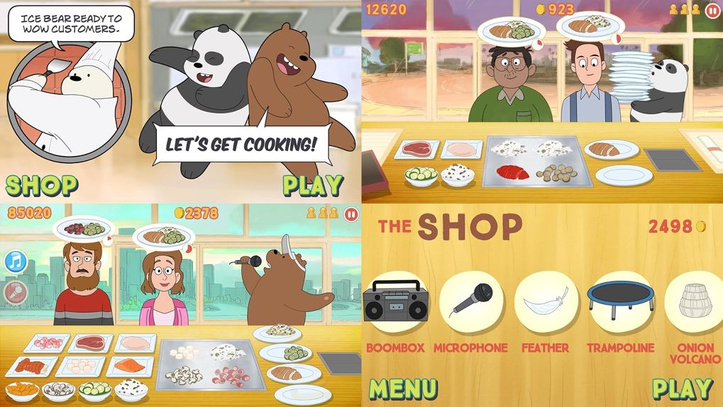 แนวเกม : Arcade จุดเด่น : เกมจากการ์ตูน เกม arcade ง่ายๆ สบายๆจากการ์ตูนของช่อง Cartoon network พบกับเจ้าหมีสามตัวสุดฮา ที่รอบนี้หมีขาวจะมาโชว์สกิลการเป็นเชฟ เราจะต้องเสิร์ฟอาหารช่วยเขา พร้อมแล้วโหลดเลย!