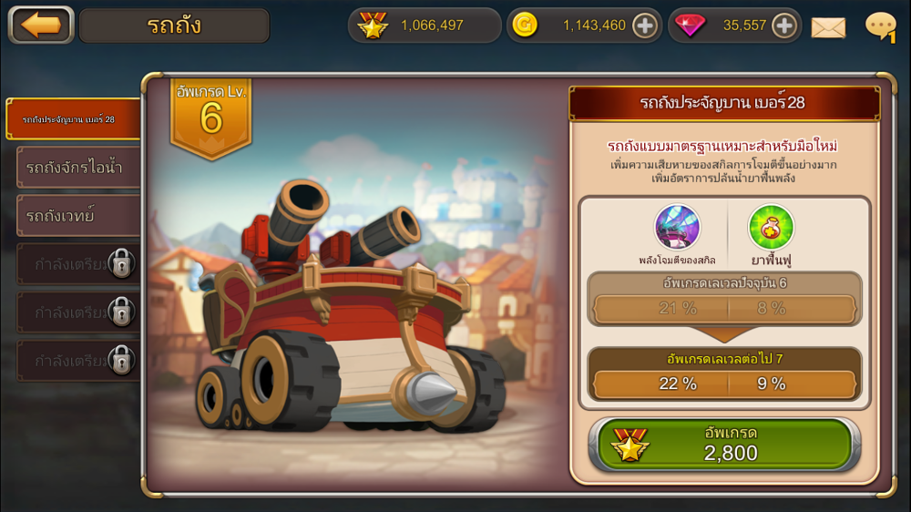 • เสริมความแข็งแกร่งให้ตัวละคร และรถถังของคุณ