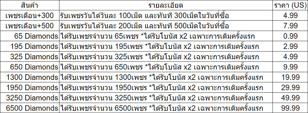 ข้อมูลที่เกี่ยวข้องการเติมเงินต่างๆ