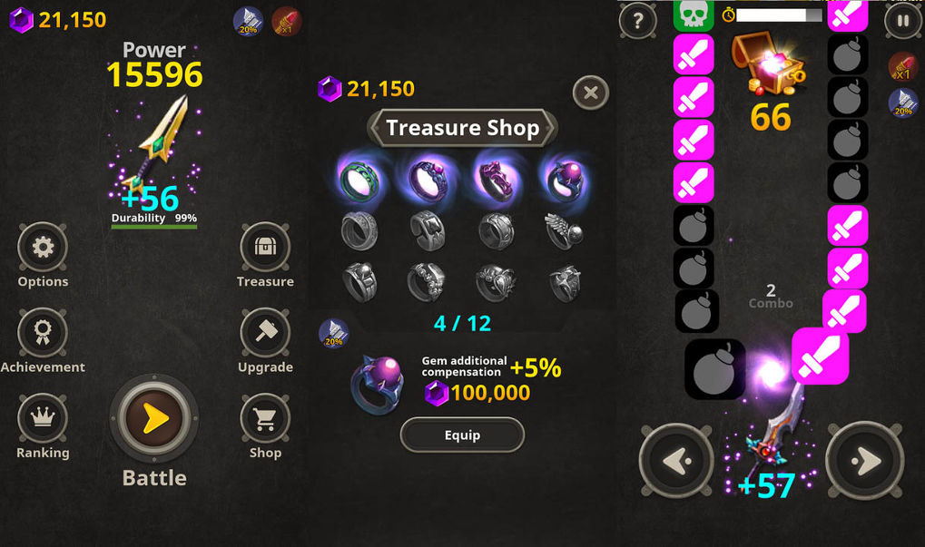 เกมที่จะพาเราไปพัฒนาดาบให้แข็งแกร่งและไร้เทียมทานเหนืออาวุธใดๆ ซึ่งมีวิธีการเล่นที่ไม่ยากเพียงแค่กดตามสัญลัษณ์ต่างๆให้ถูกต้องเพื่อสะสมเงินและอัพเกรดดาบไปเรื่อยๆ และซื้อแหวนมาเพิ่มความแข็งแกร่งให้ผู้เล่น เป็นเกมที่เรียบง่ายแต่สนุกและกดเพลินสุดๆ