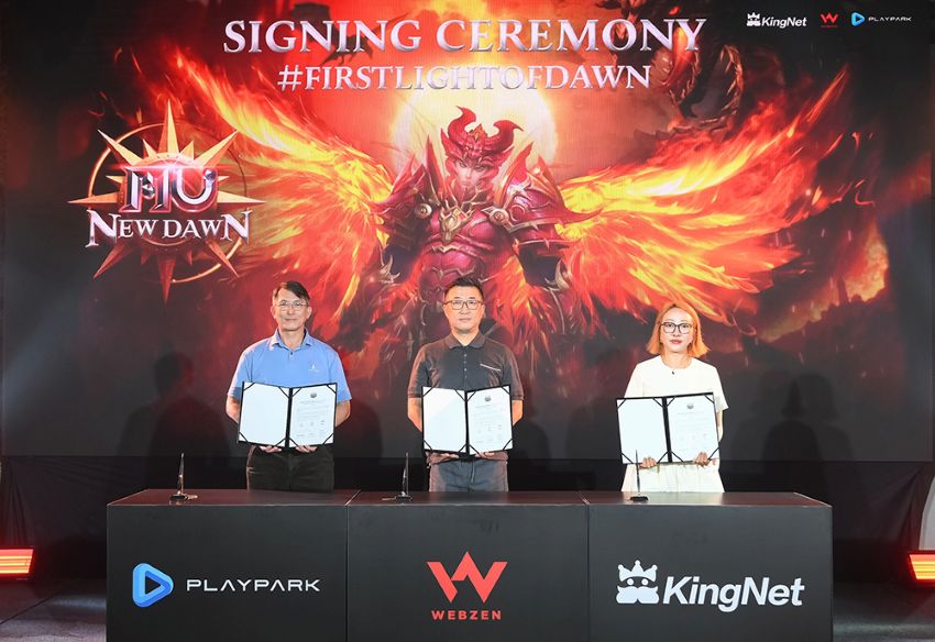 โดยพิธีลงนามจัดขึ้น ณ โรงแรมโซฟิเทล กรุงเทพฯ สุขุมวิท ภายใต้ธีมงาน #FirstLightofDawn โดยมีผู้บริหารระดับสูงจากทั้งสามองค์กรร่วมงาน ได้แก่ คุณ Quach Dong Quang, Chief Executive Officer จาก PlayPark, คุณ Richard Yangki Song, Executive Vice President จาก WEBZEN และ คุณ Zhu Xiaoxu, Chief Business Officer จาก Kingnet เพื่อเฉลิมฉลองการกลับมาของตำนาน MU ในรูปแบบมือถือและพีซี