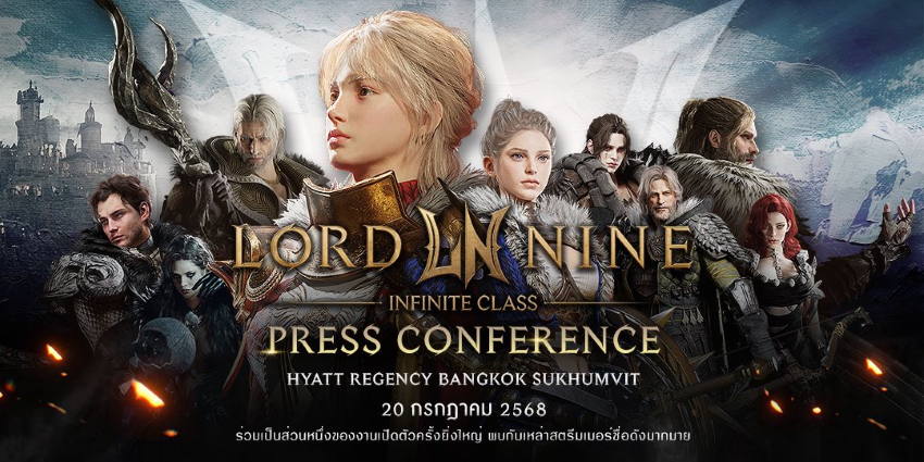 20 กรกฎาคม 2568: Smilegate ผู้พัฒนาและผู้จัดจำหน่ายเกมระดับโลก จัดงานแถลงข่าว “LORDNINE: Infinite Class” เกม MMORPG ฟอร์มยักษ์จากเกาหลี ประกาศการรุกตลาดเกมในภูมิภาคเอเชียตะวันออกเฉียงใต้และทั่วโลกอย่างเป็นทางการ พร้อมเผยกำหนดการเปิดให้บริการเซิร์ฟเวอร์โกลบอลในวันที่ 31 กรกฎาคม 2568 นี้