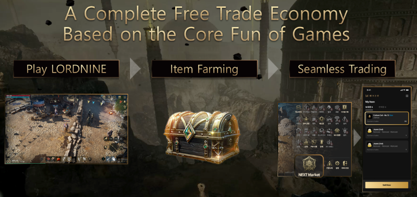 LORDNINE มีจุดเด่นอยู่ที่ระบบแลกเปลี่ยนไอเทมภายในเกมแบบเปิด ที่ให้ผู้เล่นสามารถซื้อขายแลกเปลี่ยนกันได้อย่างอิสระ และด้วยความร่วมมือกับแพลตฟอร์มตลาดเสรีของ LINE ที่ชื่อว่า NEXT MARKET เรามีความยินดีเป็นอย่างยิ่งที่จะมอบประสบการณ์การซื้อขายที่ดียิ่งขึ้นให้กับผู้เล่นในเอเชียตะวันออกเฉียงใต้ พร้อมทั้งเปิดโอกาสให้เชื่อมต่อกับผู้เล่นจากเซิร์ฟเวอร์ทั่วโลกด้วย”