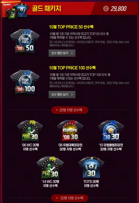 TOP PRICE 50 package [ประจำเดือนตุลาคม] โดยคัดเลือกนักเตะจาก 50 คน