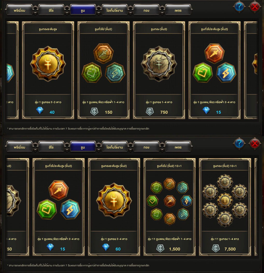 *** สุ่มรูนทอง 11 อัน 1-4 ดาว ใช้ 7,500 แต้มเกียรติยศ