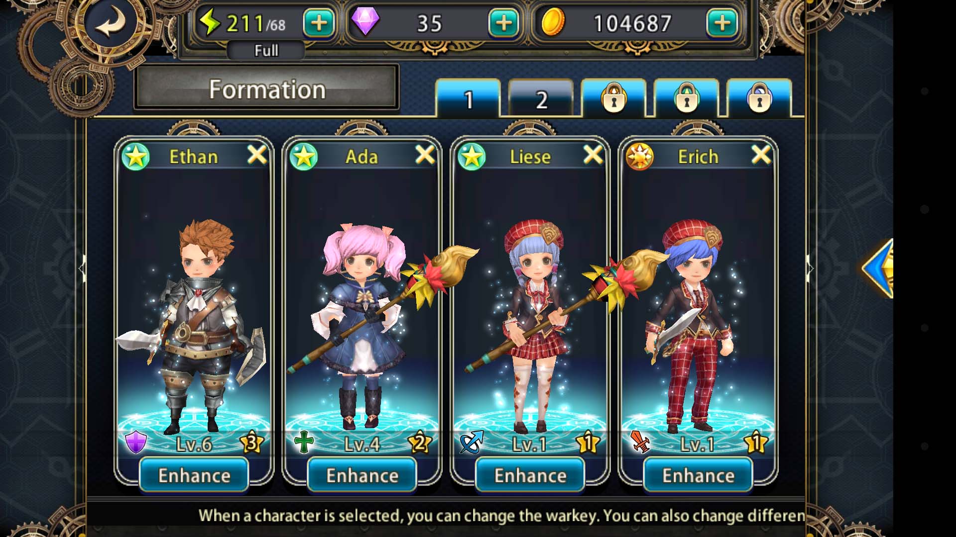 ในเกมนี้เราจะได้ควบคุมตัวละคร 4 คน นั่นคือ Ethan หนุ่มน้อยผู้หลงมาจากโลกต่างมิติ Ada สาวน้อยนักเวทย์ผู้ช่วยเหลือตัวเอก Liese & Eric ฝาแฝดอัจฉริยะผู้เข้าร่วมผจญภัยไปพร้อมกัน โดยฮีโร่ตัวอื่นๆจะถูกเรียกว่า Warky ที่เหล่าตัวเอกทั้ง 4 จะใช้พลังดึงเข้าสู่ร่างตัวเองเพื่อใช้ในการต่อสู้ (สรุปสั้นๆว่า เราเปลี่ยนตัวละครไปเป็นฮีโร่ตัวอื่นๆได้เหมือนปกตินั่นเอง ฮา)