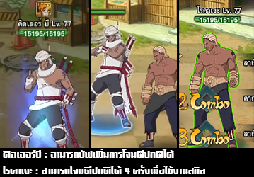 • คิลเลอร์บี : เมื่อเข้าสู่การต่อสู้บีจะใช้สกิลบัฟเพิ่มการโจมตีปกติ 1 ครั้งให้ไรคาเงะซึ่งเหมือนกับระดับอื่นๆ แต่ศัตรูจะมีค่า HP มากกว่าะดับยักษ์ สกิลของบีนี้สามารถป้องกันการขัดจังหวะได้ และบียังป้องกันสถานะดีบัฟทั้งหมดอีกด้วย