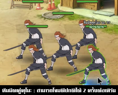 • ทีมมีดคู่คุโมะ : ศัตรูเหล่านี้โจมตีเป็นความเสียหายแบบกระบวนท่า และโจมตีตัวละ 2 ครั้งใน 1 เทิร์น