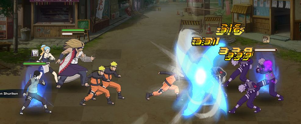 ซาสึเกะ : นินจาสายดาเมจ - มีหน้าที่หลักคือทำสร้างความเสียหายแก่ศัตรู และยังสามารถสร้างม่านพลังเพิ่มพลังโจมตีให้นินจาธาตุสายฟ้าได้