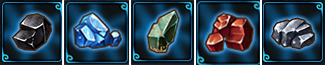 - วัตถุดิบเลื่อนขั้นอุปกรณ์เกะนิน (ขั้นสีฟ้า) ได้แก่ เหล็กดำ, บรูบรอนซ์, บรอนซ์, เรดบรอนซ์ และแร่เงิน