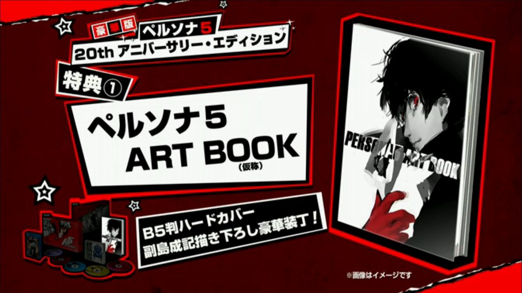 •  Persona 5 ART BOOK รวมภาพวาดจากอาจารย์ Soejima Shigenori ผู้ออกแบบตัวละครใน Persona ข้างในจะมีทั้ง ภาพ illust, ภาพฉาก รวมทั้งภาพ rough image ที่ยังไม่เคยตีพิมพ์มาก่อน