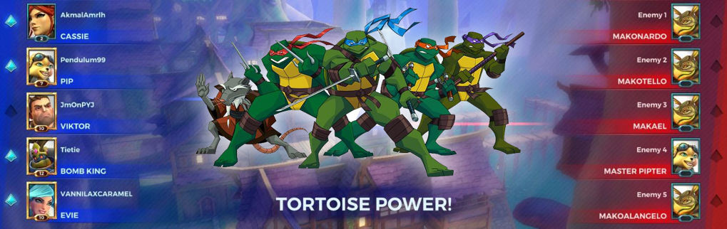 รีวิว PVE Challenge ตัวใหม่โหดกว่าเดิม! ในเกม Paladins นั้นมีการอัพเดทโหมดใหม่ที่ชื่อว่า PVE Mode ที่ให้เราร่วมมือกับเพื่อนสู้กับเหล่า AI ที่โหดมากในครั้งนี้ คุณจะต้องต่อสู้กับฝูงเต่าทั้งสี่เป็น Challenge ใหม่ที่เป็นชื่อว่า Tortoise Power โดยนำเหล่าเต่า Makoa 4 ตัวและ Pip ที่คอยซัพพอร์ทให้ทีมเปรียบเหมือนขบวนการเต่านินจาเลยทีเดียว มาลองดูชื่อของแต่ละคนกันครับ