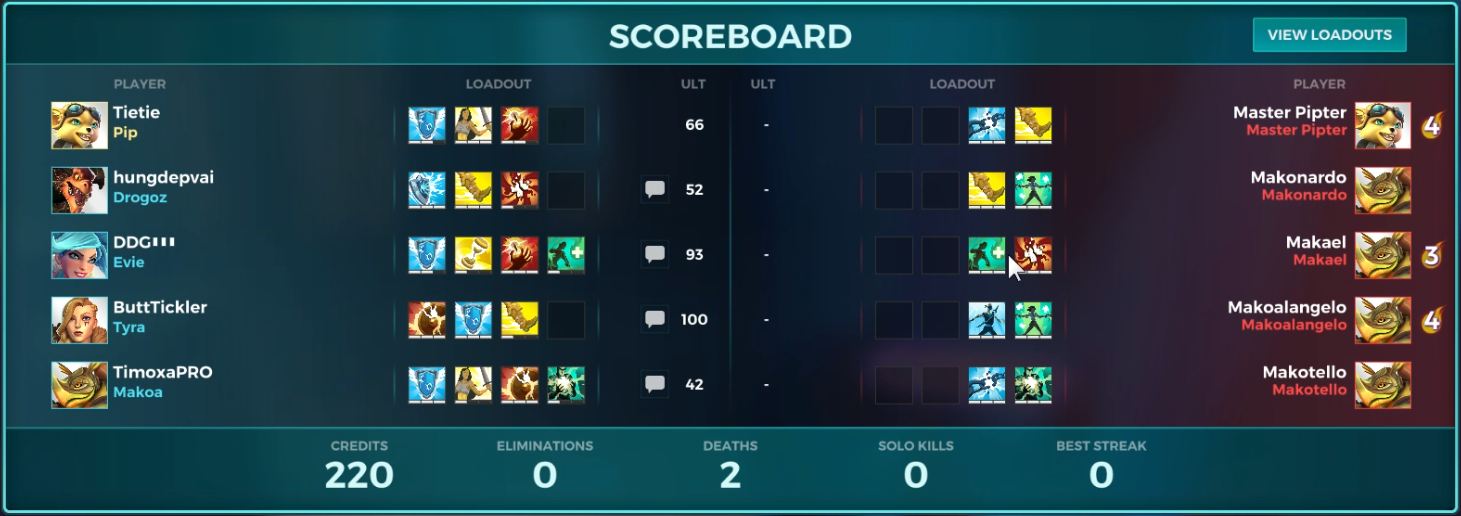 - Makoa : Tanker ตัวเดียวกันกับศัตรูที่มีความสามารถเหมือนกันเป๊ะๆ แต่การเล่นในโหมดนี้ไม่ได้เน้นการดึงศัตรูเข้ามาใกล้ๆ แต่เป็นกางโล่ขนาดใหญ่ป้องกันเพื่อนร่วมทีมจากดาเมจจากศัตรูแทน