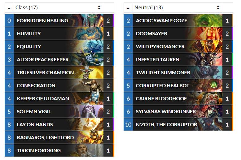 เป็น Deck เล่นสนุกอีก Deck โดยตัวสำคัญอย่าง N'Zoth, The Corruptor ที่มีคุณสมบัติเรียก มอนสเตอร์ Deathrattle ออกมา และ Tirion ยังคงเป็นการ์ดสำคัญอยู่ ข้อเสียอาจจะมีช่วงต้นเกมที่การ์ดน้อยอยู่บ้าง แต่ผ่านกลางเกมไปหากคุมได้ก็สบายมือ