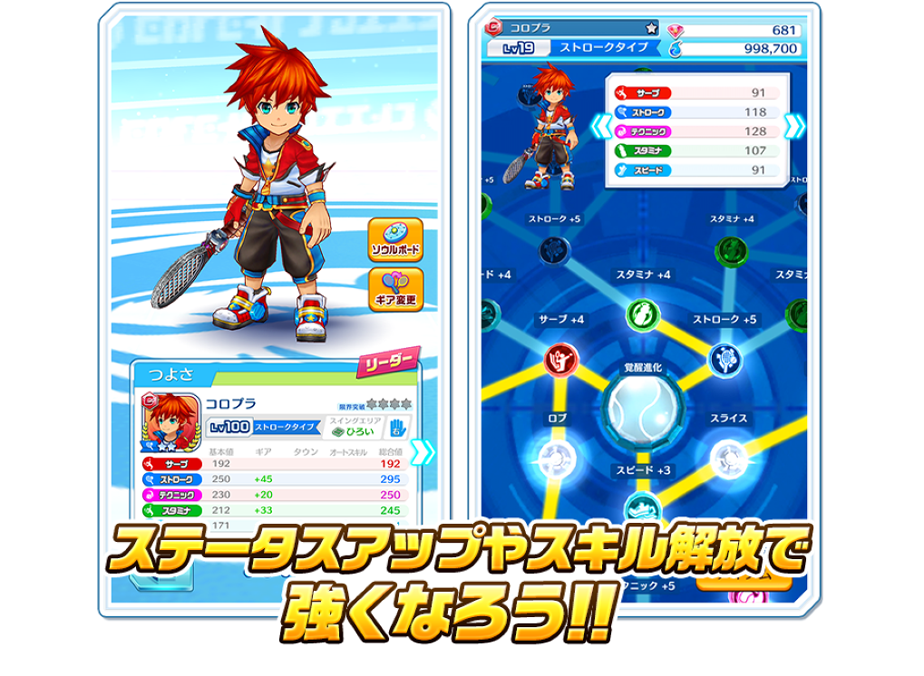 ๐ ระบบ Status และ อุปกรณ์สวมใส่ : จะเป็นเหมือนเกม RPG ที่แต่ละตัวละครจะมีความสามารถและความถนันต่างกัน เช่น สายเสริฟหนัก, สายสปีด , สายตีแรง เป็นต้น โดยสามารถ เพิ่มค่าสถานะได้ด้วยอุปกรณ์สวมใส่ที่จะสามารถหาได้ผ่านการเปิดกาชาปอง