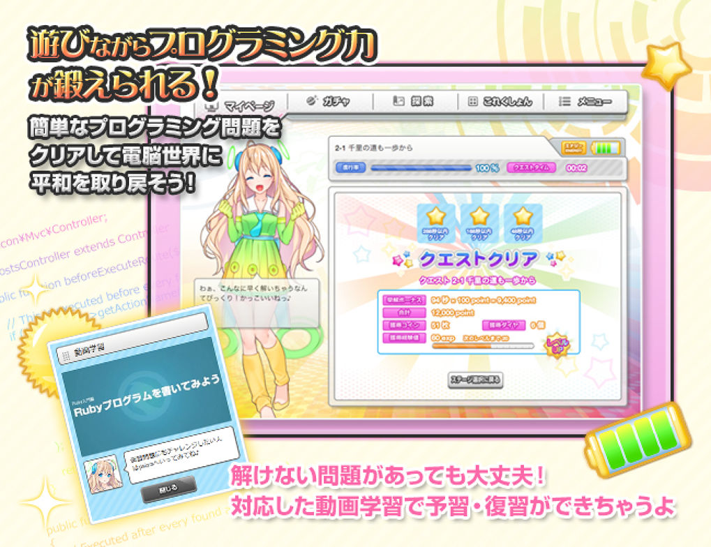 ซึ่งการเล่นก็ง่ายๆแค่ทำเควสด้วยการเขียนโปรแกรม สุ่ม gacha สะสมสาวๆ Code Girl อัพสกิลเพื่อเอาความทรงจำของเรากลับคืนมา และพัฒนาความสัมพันธ์กับสาวน้อยลิเลีย โดยโปรแกรมที่เราจะได้ฝึกเขียนจะมี PHP , Ruby และ Python(จะนำมาเปิดในเดือนพฤษภา) ค่ะ เล่นเกมนี้แล้วเอาไปทำงานได้เลยไหมอะ *o*