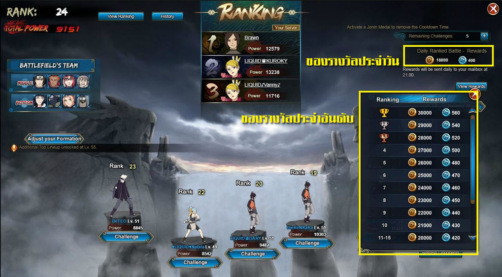ตัวอย่างจากภาพด้านบนนี้นะครับ ในทีมจะประกอบด้วย Naruto, Sasuke, Sakura และตัวละครหลักของเรา