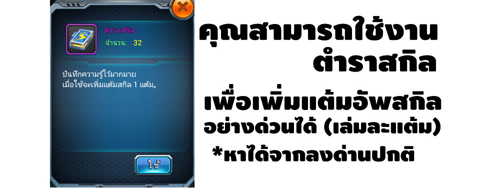 หมายเหตุ. คุณสามารถอัพเลเวลได้ ตามระดับเลเวลตัวละครปัจจุบัน เช่นตอนนี้ Lv.30 ก็จะสามารถอัพได้สูงสุดที่ 30
