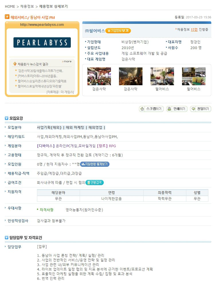เอาละครับท่านผู้ชม งานนี้เรียกได้ว่าตื่นเต้นตื้นตันกันหนักหนาสาหัสสากรรจ์เลยทีเดียว เพราะเมื่อเดือนที่ผ่านมา ทาง PearlAbyss ผู้พัฒนาเกมจากประเทศเกาหลีใต้ ได้ประกาศรับสมัครผู้ดูแลธุรกิจระหว่างประเทศ ซึ่งผู้สมัครต้องมีประสบการณ์ในการดูแลเกมในเซิร์ฟเวอร์ SEA มาก่อน พร้อมทั้งใช้ 1 ในภาษาหลักของโซน SEA ได้ (คาดว่าน่าจะเป็นอังกฤษ) ซึ่งจากข้อมูลเหล่านี้ทำให้เราทราบได้ว่า ทาง PearlAbyss ต้องสนใจนำเกมของตัวเองมาเปิดในโซน SEA เป็นแน่แท้ ซึ่งเกมที่ว่าก็คงหนีไม่พ้นเกมทะเลสีดำ "Black Desert" เกมฟอร์มยักษ์ของทางฝั่งเกาหลี จนทำให้ผู้เขียนแอบคิดไม่ได้ว่า ถ้ามันมาไวจนเปิดแข่งกับ Blade and Soul ได้ ตลาดเกมไทยปีนี้ น่าจะเป็นอะไรที่คึกคักที่สุดในรอบ 3-4 ปีนี้เลยทีเดียว
