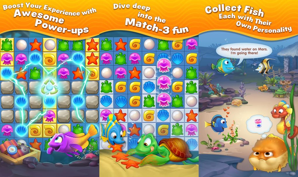 แนวเกม : Puzzle จุดเด่น : คุณปลาสุดน่ารัก เกม Puzzle สไตล์น่ารักๆ ที่เอาปลาหลากหลายสายพันธุ์ที่อยู่กันเป็นชุมชน มาร่วมด้วยช่วยกันเรียงอัญมณีแก้ปัญหาต่างๆไปเรื่อยๆ ใครชอบ Puzzle สไตล์การ์ตูนน่ารักๆ ห้ามพลาดเด็ดขาด