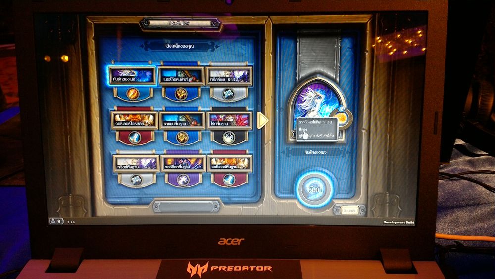 ตัวจริงเสียงจริงของผู้ให้กำเนิดเกม HearthStone(แมนๆ ซ้ายมือนะ)ภายในงานนี้ถือเป็นงานเปิดตัวที่เรียกว่ายิ่งใหญ่เอามากๆ เพราะถือเป็น งานแรกที่เราจะได้เจอและพูดคุยกับคุณ Jason Chayes หัวเรือใหญ่ของทีมพัฒนา Hearthstone ที่ไม่เคยออกงานไหนมาก่อนเลย แต่ในคราวนี้ ลงทุนบินมาเพื่อแฟนเกมเมอร์ชาวไทยโดยเฉพาะอีกด้วย และแน่นอนว่าในงานเปิดตัวครั้งนี้ คุณ Jason Chayes ก็ได้ออกมายืนยันความสนุกที่เกมเมอร์ชาวไทยจะได้สัมผัสสุดยอดเกมมือถือที่สมบูรณ์ที่สุด และที่เห็นจะเรียกเสียงฮือฮาในงานคงหนีไม่พ้นคลิปแรกที่คุณเจสันได้เตรียมเซอร์ไพร์เอาไว้นั่นคือตัวอย่างของเกม HearthStone เวอร์ชั่นภาษาไทยที่ไม่ใช่แค่แปลการ์ดอย่างเดียวนะ เพราะเราจะได้อรรถรสมากๆ ด้วยเสียงพากษ์ตัวละครและเนื้อเรื่อง รวมถึงบทสนทนาในขณะที่เรากำลังต่อสู้กันอยู่อีกด้วย น้องหมอกรองแชมป์คนไทยที่ล้มตัวเต็งอย่างจีนไต้หวันได้อย่างราบคาบก็มาในงานนี้ด้วยHearthstone เปนเกมการ์ดออนไลนแนวกลยุทธที่เล่นได้ฟรี และทุกคนสามารถร่วมสนุกไปกับเนื้อหาของเกมที่อ้างอิงจากตัวละคร และรูปแบบของมหากาพย์ Warcraft®ผลงานระดับตำนานของบลิซซาร์ด โดยผู้เล่นสามารถเลือกตัวละครจาก 9 ฮีโร และใช้ การ์ดต่างๆ จากสำรับ (Deck) ของผู้เล่นเพื่อใช้เวทมนตร์, อาวุธ หรือความสามารถต่างๆ และเรียกตัวละครที่แข็งแกร่งมาบดขยี้ฝ่ายตรงข้ามได ด้วยอาร์ตสไตล์ที่เป็นเอกลักษณ์แฝงไปดวยอารมณ์ขน และสุดยอดความสนุกของเกม Hearthstone จงมอบประสบการณสุดวิเศษให้กับผู้เล่นทกคน โดยเฉพาะผู้เล่นหน้าใหม่ที่จะสามารถเข้าถึงเกม และเล่นเกมได้ง่ายขึ้น