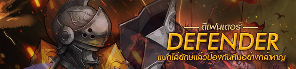 นักรบที่เปรียบเสมือนโล่กำบังที่คอยปกป้องชาวบ้านจากภัยอันตราย! ดีเฟนเดอร์มีจุดเด่นที่พลังป้องกัน และพลังชีวิตที่สูง โดยเค้าจะกางโล่คอยรับการโจมตีของศัตรูให้กับปาร์ตี้ของเรา ช่วยป้องกันรถถังและผู้พิทักษ์ที่โจมตีระยะไกลได้เป็นอย่างดี แต่ข้อเสียของเค้าก็คือค่าพลังโจมตีที่ต่ำ และการเดินที่เชื่องช้า ใช้มานา 2 แต้มในการเรียก