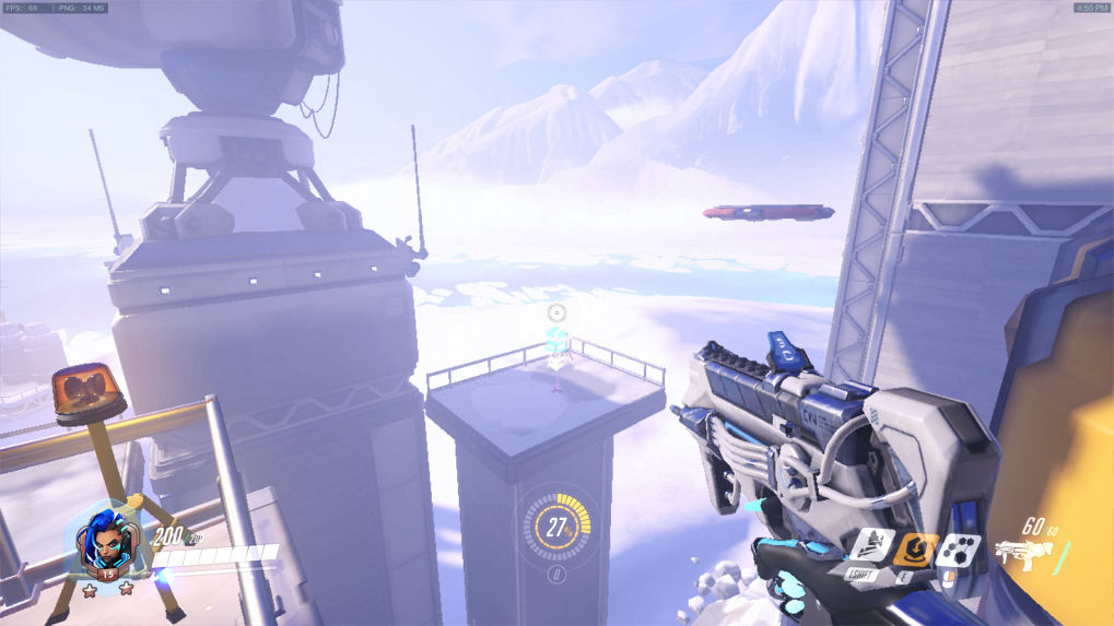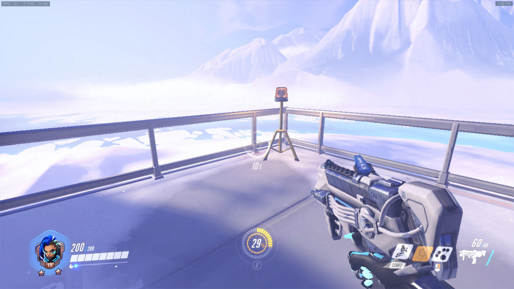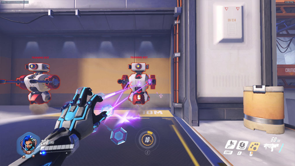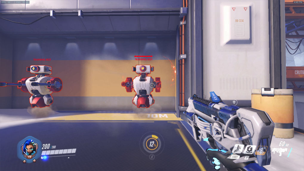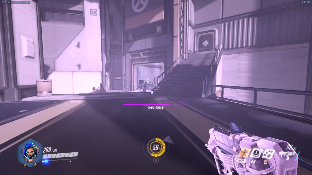 ทดสอบการยิงจากระยะใกล้ โดยเล็งเข้าที่หัวจัดการศัตรูได้โดยที่เหลือกระสุนอีก 41 นัดเมื่อลองทดสอบการยิงจากระยะไกล โดยเล็งเข้าที่หัวจัดการศัตรูได้ช้ากว่า และกระสุนเหลือเพียง 31 นัดหนึ่งในความสามารถที่จะคอยปั่นป่วนศัตรูในหลายๆสถานการณ์ การ Hack ของ Sombra นั้นจะสามารถยับยั้งการใช้ Ability ของศัตรูได้ และสามารถทำการ Hack กล่องพยาบาลรอบๆ Map เพื่อให้ศัตรูไม่สามารถเก็บได้ครับ เป็นการชิงความได้เปรียบในพื้นที่และยังทำให้เพื่อนมีโอกาสในการจัดการศัตรูมากขึ้นด้วย หลังจาก Hack ไปแล้วจะมี Cooldown ในการใช้สกิล 12 วินาทีใช้เวลาประมาณ 1.2 วินาทีในการ Hackหลังจาก Hack แล้ว จะมีแถบ HP ขึ้นที่หัวของศัตรู และบอกความพร้อมในการใช้ Ultimate ด้วยหลังจาก Hack กล่องพยาบาล จะมีสัญลักษณ์ของ Sombra ขึ้น พร้อมบอกระยะเวลาที่เหลือของการถูก Hackเธอสามารถใช้ความสามารถนี้คอยตัดจังหวะการทำเกมของศัตรูได้ เช่น การ Hack โล่ของ Reinhardt ให้ไม่สามารถใช้งานได้ หรือทำให้เธอสามารถ Hack แล้วจัดการฮีโร่เลือดน้อยๆในแนวหลังของศัตรูได้ไวขึ้น เช่น AnaNote : สำหรับระยะเวลาในการ Hack แต่ละอย่างของ Sombra นั่นจะไม่เท่ากันครับ - Hack Ability ทำให้ศัตรูไม่สามารถใช้ Ability ใดๆได้ นอกจาก Passive เป็นเวลา 6 วินาที และยังเปิดเผยให้เห็น HP ของศัตรูรวมไปถึงความพร้อมในการใช้สกิล Ultimate ของศัตรูด้วย เป็นเวลา 20 วินาที- Hack กล่องพยาบาลได้เป็นเวลา 1 นาที และทำให้กล่องพยาบาลนั้นเกิดขึ้นมาใหม่หลังจากเก็บไปแล้วเร็วขึ้น (กล่องพยาบาลกล่องเล็กจะเกิดภายใน 2.5 วินาที และกล่องพยาบาลกล่องใหญ่จะเกิดภายใน 3.75 วินาที) - Hack Turret ของ Trobjorn ได้ 10 วินาทีสกิลนี้จะช่วย Sombra ในการเข้าถึงศัตรูแนวหลังได้ง่ายขึ้น โดยเฉพาะฮีโร่ซัพพอร์ต ระหว่างที่เธอหายตัวนั้นจะสามารถเคลื่อนที่ได้รวดเร็วยิ่งขึ้น สามารถพลิกแพลงการใช้ Ability นี้ได้หลายรูปแบบ นอกจากการเข้าถึงฮีโร่ศัตรูแล้ว สามารถเคลื่อนที่ไปตามจุดต่างๆเพื่อทำการ Hack กล่องพยาบาลได้ด้วยเช่นกัน สามารถยกเลิกการหายตัวได้ก่อนด้วยการโจมตีรูปแบบใดก็ครับ ระยะเวลาในการหายตัวของเธอจะอยู่ที่ 6 วินาที และมี Cooldown 6 วินาทีเช่นกันครับNote : ข้อควรระวังในการใช้ Thermoptic Camo ถ้าหาก Sombra ถูกโจมตีแม้แต่เพียงนิดเดียว จะทำให้การหายตัวของเธอสิ้นสุดลงทันที ควรเคลื่อนที่ไปในทางที่ไม่มีฮีโร่อยู่จะดีที่สุด เพื่อป้องกันไม่ให้ศัตรูรู้ตัวและจัดการเธอได้ครับ