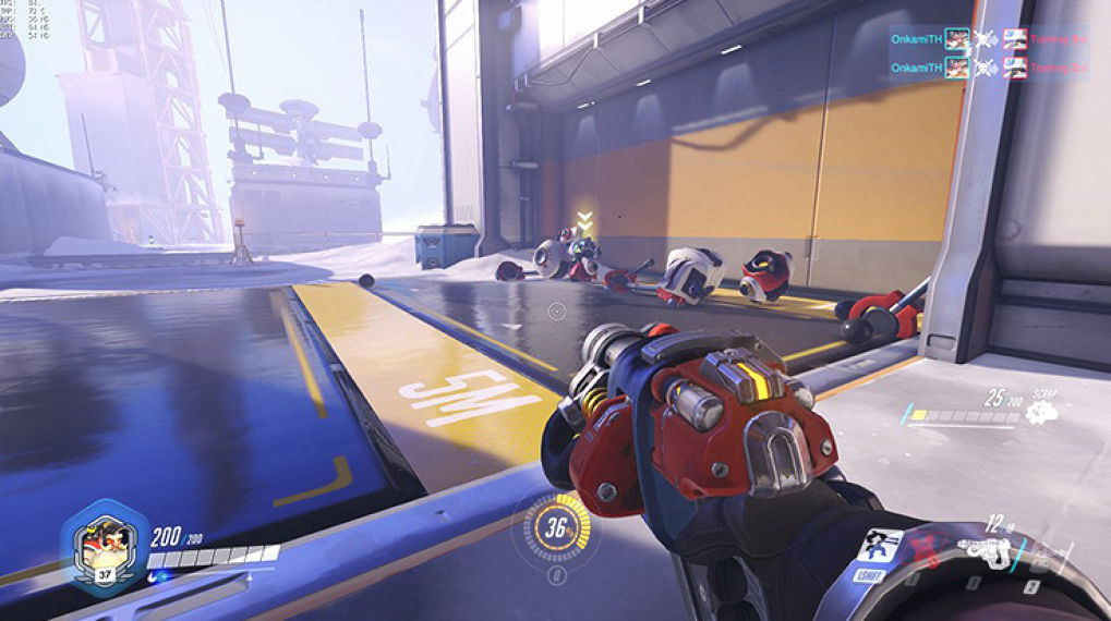 Torbjörn โยนชุดเกราะให้เขาและเพื่อนร่วมทีมทำให้สามารถต้านทานดาเมจได้บางส่วน