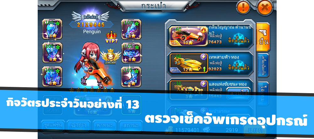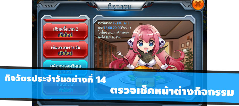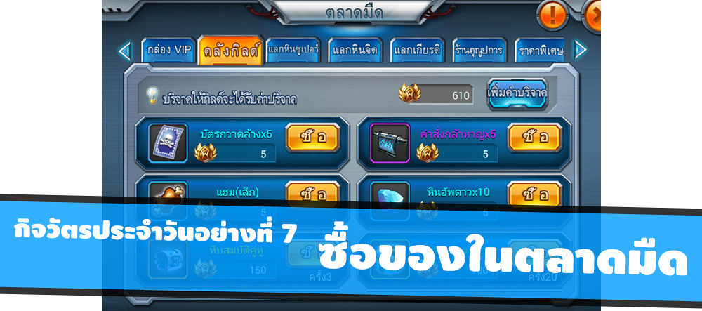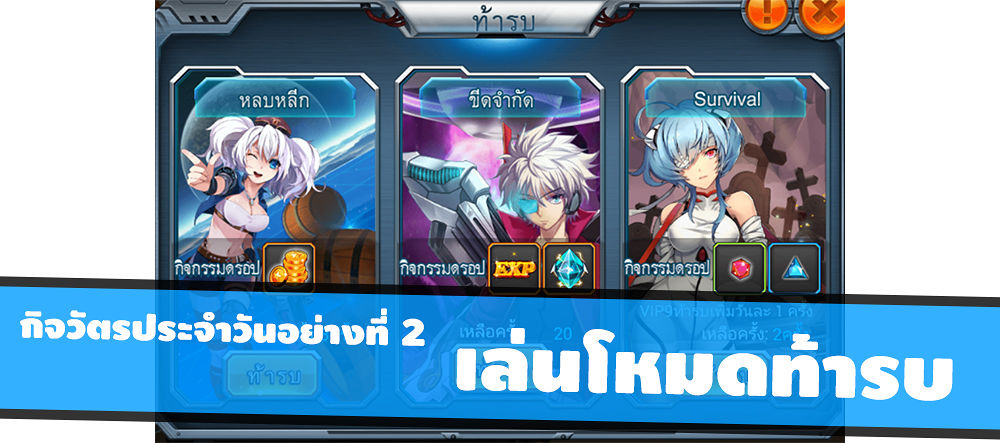 หากเพื่อนๆ เปิดเกมขึ้นมาแล้วคิดไม่ออกว่า จะทำอะไรดี แนะนำให้เพื่อนๆกดเข้าหัวข้อ "ภารกิจ" แล้วไล่เช็คภารกิจประจำวัน-ภารกิจเนื้อเรื่อง ว่ามีอะไรยังไม่ทำ? ทำอันไหนได้บ้าง? แล้วจัดการลงมือทำให้เสร็จๆไปซะ โดยภารกิจเหล่านี้ จะช่วยเพิ่มค่า EXP. ผู้เล่นเป็นอย่างมาก อีกทั้งยังได้ของแถมเป็นเพชรและไอเทมอื่นๆอีกมากมาย เรียกได้ว่ายิงนัดเดียวได้นกสองต่อเลย [เพิ่มเติมอ่านที่นี่]