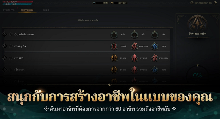 • อิสระในการเล่นที่ผสมผสานสกิลและความสามารถ เพื่อสร้างอาชีพได้กว่า 60 แบบ