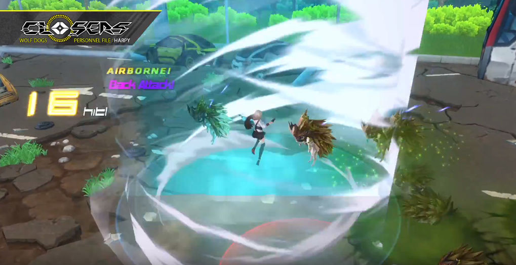 เรื่องราวของ Harpy นั้นแต่เดิมแล้วเธอเคยเป็นสุดยอดโจรที่ชื่อว่า “Phantom Thief” แต่วันหนึ่งเจ้าตัวดันไปเห็นข้อมูลที่ไม่ควรจะเห็นเข้าจึงถูกจับตัวและถูกบังคับให้มาร่วมงานกับหน่วย Wolf Dogs โดยอาวุธของเธอก็คือลีลาท่าเตะที่ฝีมือจัดว่าโหดและยังเซ็กซี่ไม่น้อยหน้าตัวละครอื่นเลยค่า (อิจฉาง่ะ) ซึ่งลักษณะรูปแบบการต่อสู้ของ Harpy ก็จะมีทั้งท่าเตะที่ปล่อยรัวๆ ดั่งพายุ, พุ่งเข้าเตะศัตรูให้ลอยขึ้นไป, การสปริงตัวกลางอากาศไปมาซ้ายขวาอย่างรวดเร็ว แล้วจากนั้นทำการกระทืบศัตรูจากกลางอากาศลงสู่พื้นก็ได้ ซึ่งส่งผลให้ศัตรูเกิดอาการชะงักและช่วยให้เราต่อคอมโบได้นานและง่ายขึ้นด้วยค่ะ