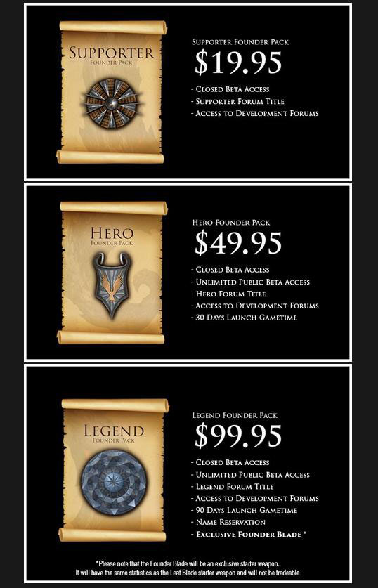 นอกจากตัวเกมจะมีการเก็บค่าบริการเป็นรายเดือนแล้ว ตัวเกมยังมีการจำหน่าย "Founder Packs" ซึ่งจะเป็นการซื้อสิทธิ์ของผู้ที่ต้องการเข้าไปเล่นในช่วง Closed Beta นี้ บวกกับไอเทมต่างๆ ที่จะทำให้เราสะดวกสบายมากยิ่งขึ้น สำหรับการเล่นเกมในช่วงต้น