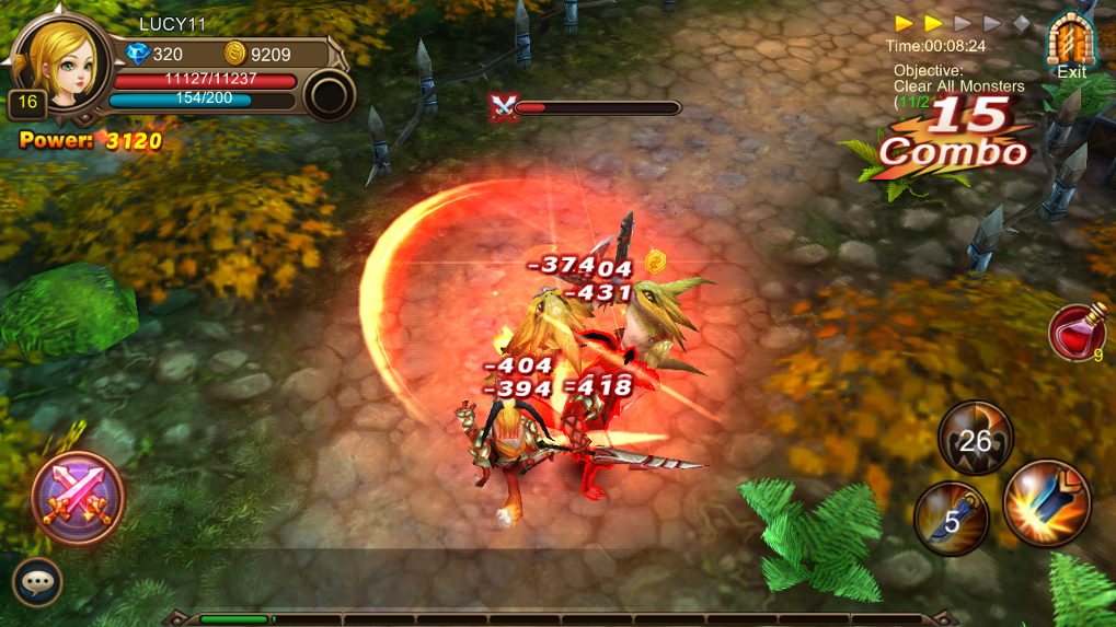 เพื่อนๆสามารถที่จะสไลด์หน้าจอเพื่อหลบการโจมตี หรือทัชหน้าจอเพื่อโจมตีหรือใช้สกิลได้