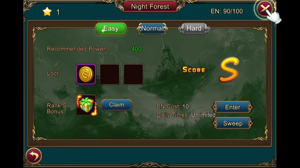 ในส่วนของเกมเพลย์เราจะต้องเลือกแผนที่ๆจะลงโดยจะมีระดับ Easy,Normal,Hard หากเราผ่านแต่ละด่านได้จะได้รับดาวมาเพื่อใช้อัพสกิลต่างๆ นอกจากนี้หากผ่านได้ระดับ S ครั้งแรกเราจะสามารถกดรับรางวัลได้อีกด้วย