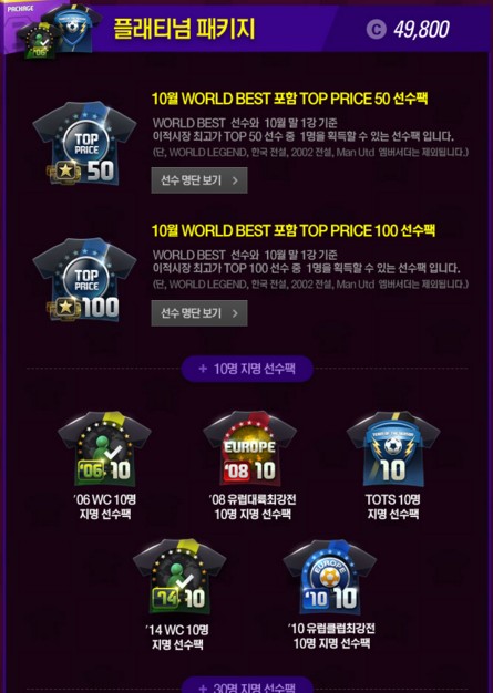 WORLD BEST + TOP PRICE 50 package [ประจำเดือนตุลาคม] โดยคัดเลือกนักเตะจาก 50 คน