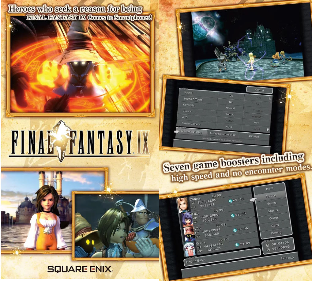 เกี่ยวกับตัวเกม - Final Fantasy IX วางขายครั้งแรกในเครื่อง Playstation ในปี ค.ศ.2000 โดยเป็นเรื่องราวการผจญภัยของซีดานซึ่งได้รับภารกิจให้มาลักพาตัวองค์หญิงการ์เน็ตแห่งเมืองอเล็กซานเดรียซึ่งเป็นจุดเริ่มต้นของการพจญภัยที่น่าตื่นเต้นและอันตรายที่ทำให้เขาและเธอเพื่อนพ้องที่ไว้ใจได้มากมาย ซึ่งตัวเกมในภาคนี้จะออกไปในทางแฟนตาซีที่ชวนหลงใหลซึ่งตัวเกมจะเปิดเผยเบื้องหลังของตัวละครออกมาเรื่อยๆ ซึ่งมีการเล่าเรื่องที่ควบคู่กับภาพและกราฟฟิกที่สวยงาม ทำให้เกมนี้สร้างความประทับใจให้กับแฟนๆในยุคนั้นเป็นอย่างมา โดยในเวอร์ชั่นที่ปรับปรุงมาแล้วนี้ ได้มีการปรับกราฟฟิกของตัวโมเดลและมูวี่ภายในเกม นอกจากนี้ยังเพิ่มระบบ Auto-save และอื่นๆ ลงไปอีกมากมาย