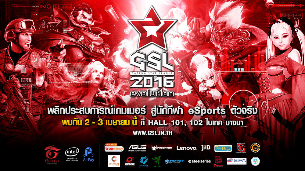 การีนา ประเทศไทย ชวนสัมผัสประสบการณ์อีสปอร์ตที่ยิ่งใหญ่ที่สุด ในระดับอาเซียน ในงาน Garena Star League 2016 (GSL 2016) ที่จะยกระดับวงการอีสปอร์ตไทยให้เทียบเท่าระดับโลก ในงานมีกิจกรรมการแข่งขันอีสปอร์ตที่ให้ผู้เข้าร่วมงานได้ทดลองแข่งขันจริง ด้วยการยกคอมพิวเตอร์มาจัดงานมากกว่า 1,000 เครื่อง พร้อมเงินรางวัลสำหรับผู้ชนะ และมีกิจกรรมให้ร่วมสนุกอีกมากมาย มาร่วมสัมผัสประสบการณ์จริงกันได้ในวันที่ 2 – 3 เมษายน นี้ที่ Hall 101, 102 ไบเทค บางนา กิจกรรมการประกวด League of Legends Cosplay Contest ที่มีเงินรางวัลรวมกว่า 50,000 บาท ในหัวข้อการประกวด Evolution หรือ การพัฒนาการที่ไม่มีที่สิ้นสุด คุณก็สามารถเข้าร่วมเป็นส่วนหนึ่งของการประกวดครั้งยิ่งใหญ่ครั้งนี้ได้ ช้างศึกไทยพร้อมลุย!!! กับโชว์แมท Point Blank จากเหล่านักฟุตบอลทีมชาติไทยแบบครบทีม 5 คน ประกอบไปด้วย กัปตันทีมชาติไทย อุ้ม ธีราทร, เมสซี่เจ ชนาธิป, ต้น นฤบดินทร์, กบ สุเชาว์ ที่พร้อมมาประชันฝีมือกับเหล่าเกมเมอร์ และการแข่งขันสุดยิ่งใหญ่ของเกม Point Blank ชิงเงินรางวัลรวมกว่า 400,000 บาท พร้อมสิทธิ์ในการเป็นตัวแทนของประเทศไทย เพื่อเดินทางไปแข่งขันรายการระดับโลก Point Blank World Challenge 2016 ที่ประเทศเกาหลีใต้ สัมผัสประสบการณ์ด้วยตัวคุณเอง ในงาน GSL 2016 ได้ในวันที่ 2 - 3 เมษายน นี้ที่ Hall 101, 102 ไบเทค บางนา หรือติดตามข่าวสารต่างๆ เพิ่มเติมเกี่ยวกับงานได้ที่