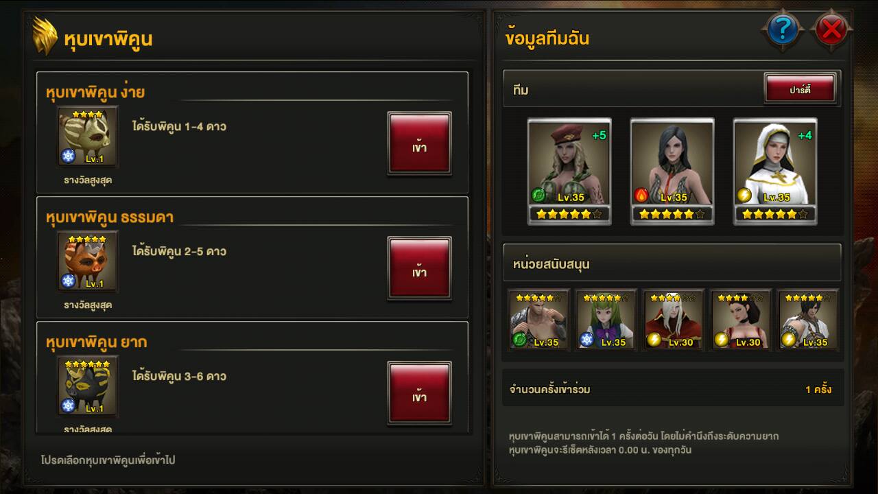 โหมดนี้ควรเข้ามาบ่อยๆนะครับ ทุกครั้งที่จำนวนเข้าร่วมรีเต็ม เพราะโหมดนี้รางวัลคุ้มค่ามากๆ เป็นเพชรนั่นเอง ส่วนรอเวลารีจำนวนครั้งในการเข้าร่วม 1 ครั้งใช้เวลา 30 นาที รวม 10 ครั้งก็ 300 นาที หรือก็คือรอยาวๆ 5 ชั่วโมงครับ